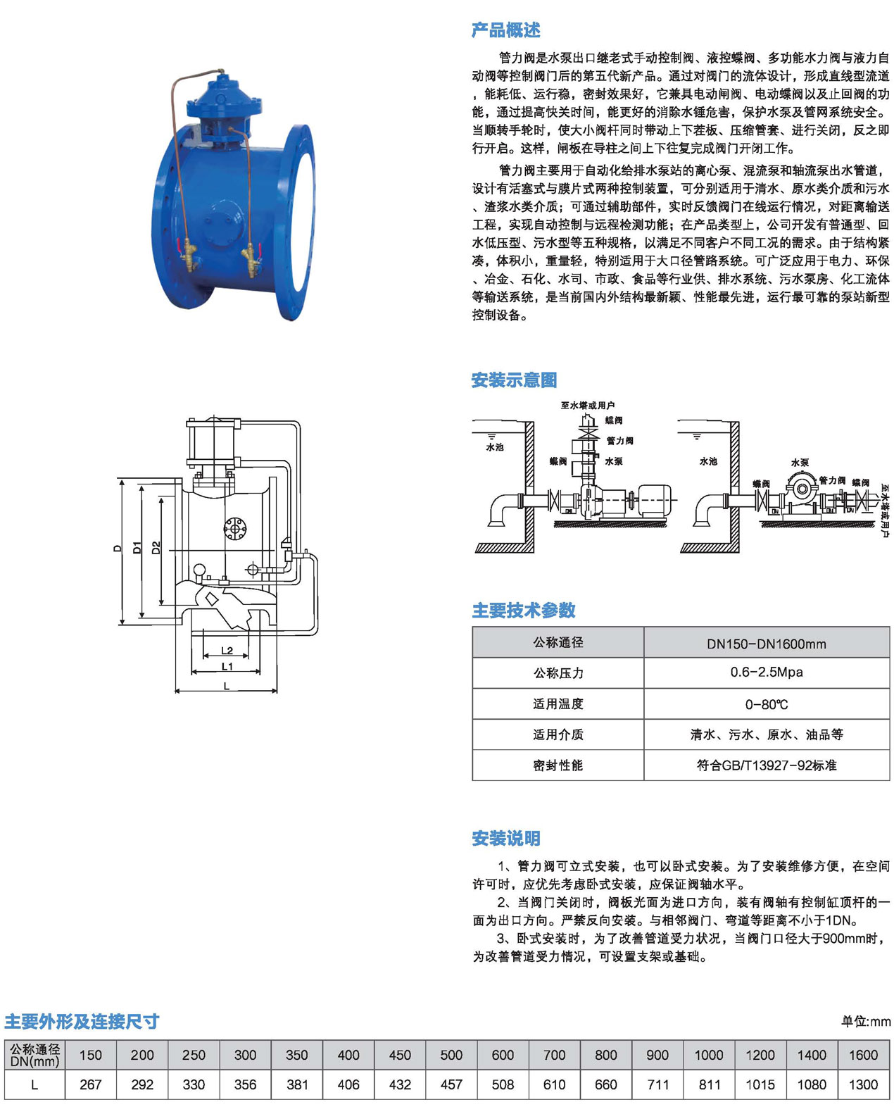 口径:DN150~DN1600mm